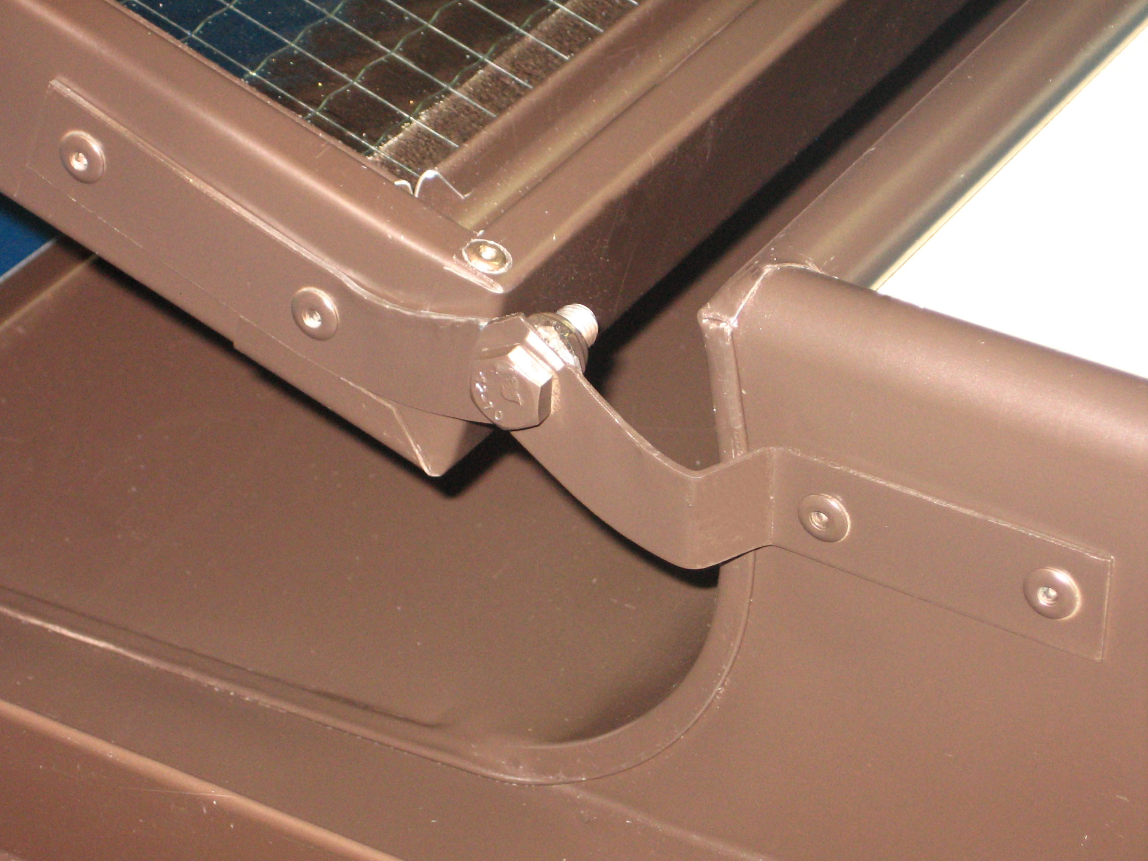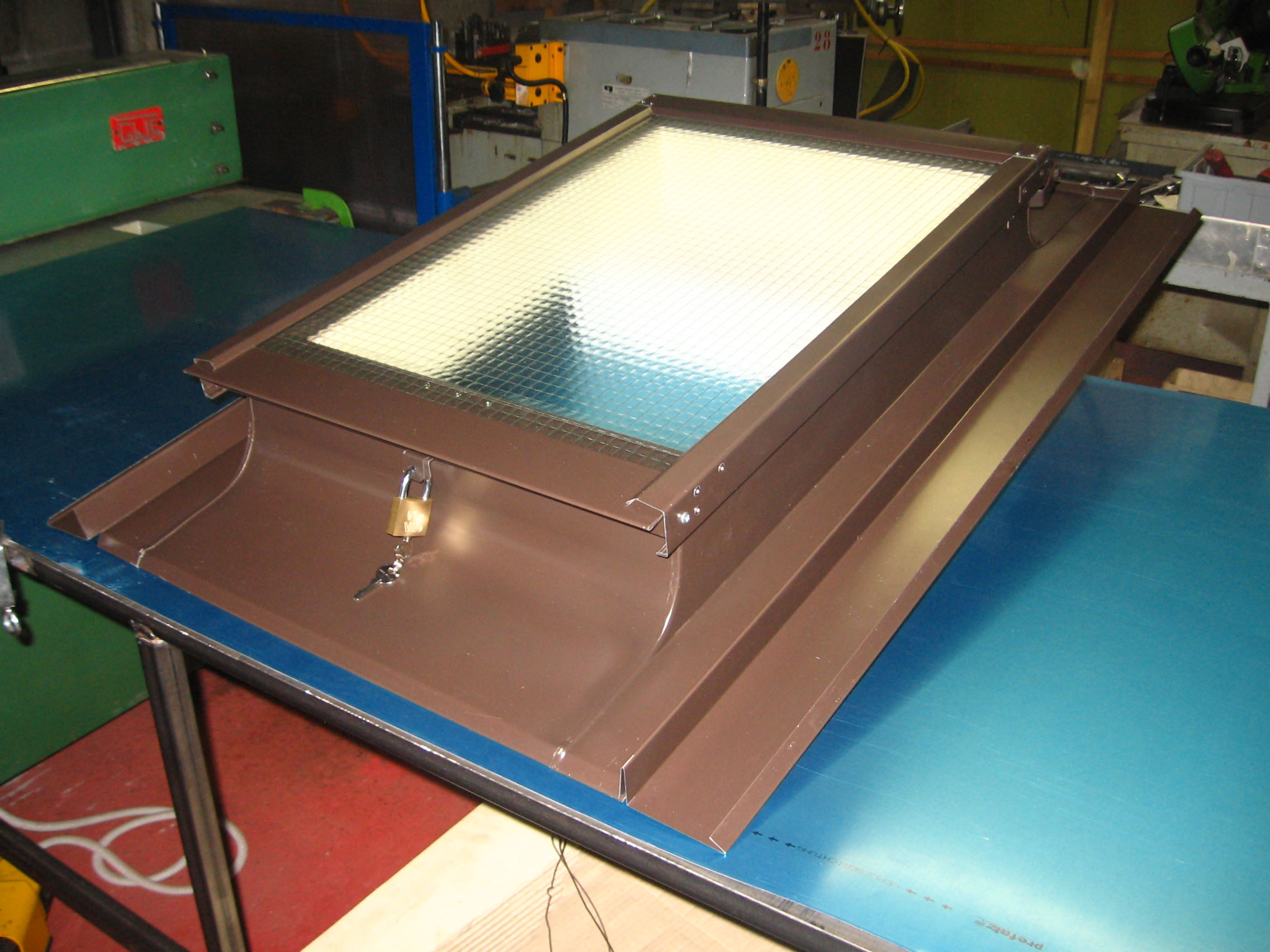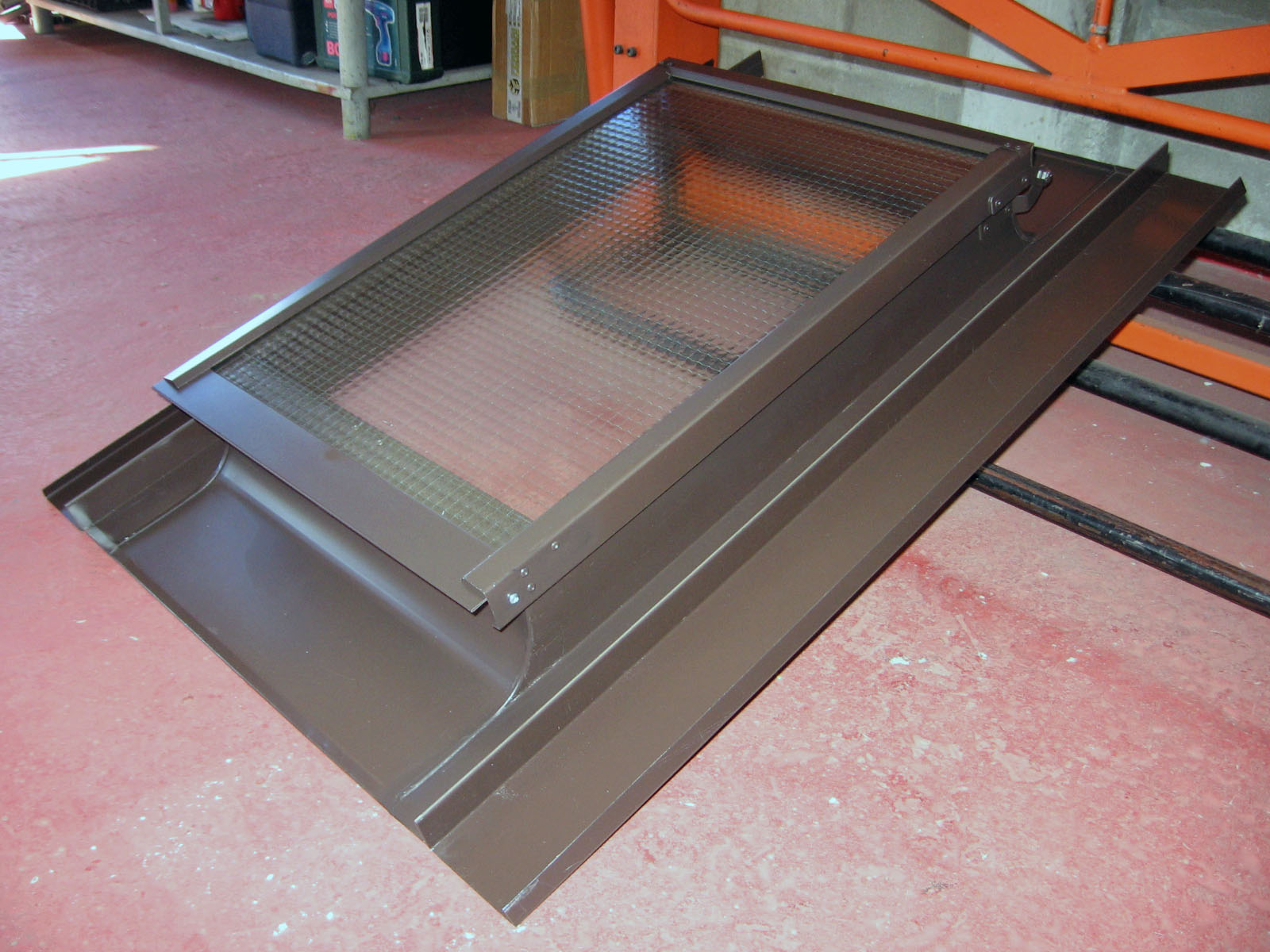 Lucernaio/Passauomo Testa di Moro modificato su richiesta del cliente: apertura solo da esterno, vetro retinato e canali di sottotegola